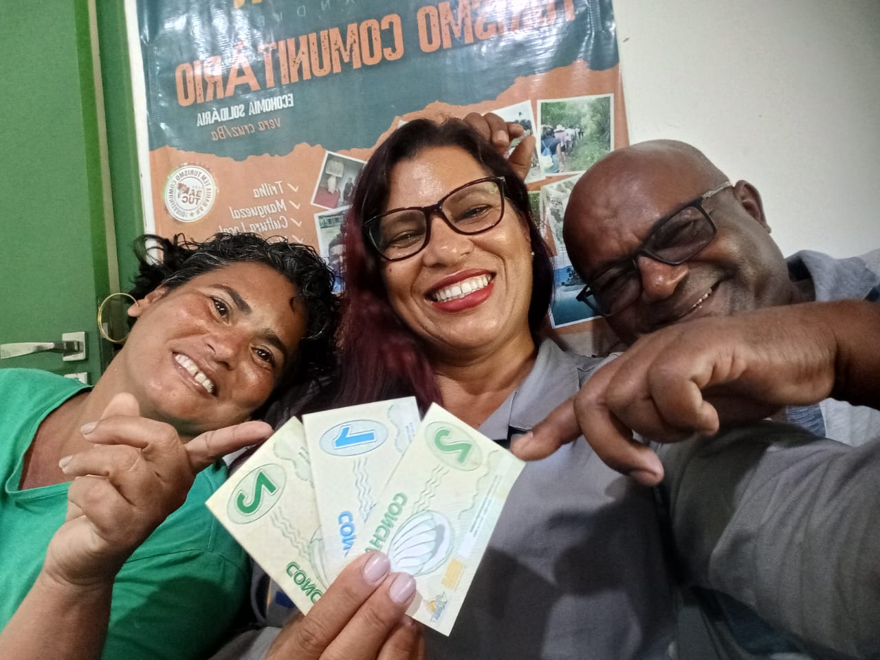Durante a atividade, destacou-se a experiência de economia solidária desenvolvida em Matarandiba, que inclui a implantação de um banco comunitário e a criação da moeda social “Concha”, utilizada tanto na comunidade quanto em estabelecimentos comerciais do município de Vera Cruz. Essas iniciativas fortalecem o comércio local, estimulam o consumo interno e ampliam a autonomia econômica dos moradores.