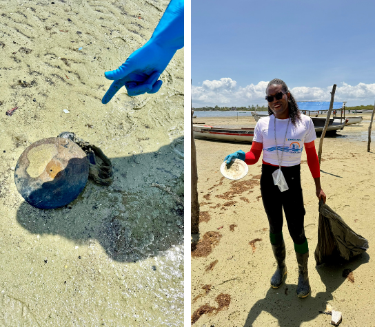 Durante os dois dias de mobilização, foram recolhidos 1.150 kg de resíduos sólidos. Em Conceição de Salinas, onde o volume chegou a 790 kg, boa parte do material era composta por petrechos de pesca abandonados, muitos deles parcialmente enterrados na areia. Esses resíduos, como redes, cabos e linhas de nylon, oferecem grande risco à fauna marinha e à própria pesca local. O descarte incorreto, feito muitas vezes por descuido ou falta de orientação, acaba gerando danos que comprometem o equilíbrio ambiental e a fonte de renda dos próprios pescadores.